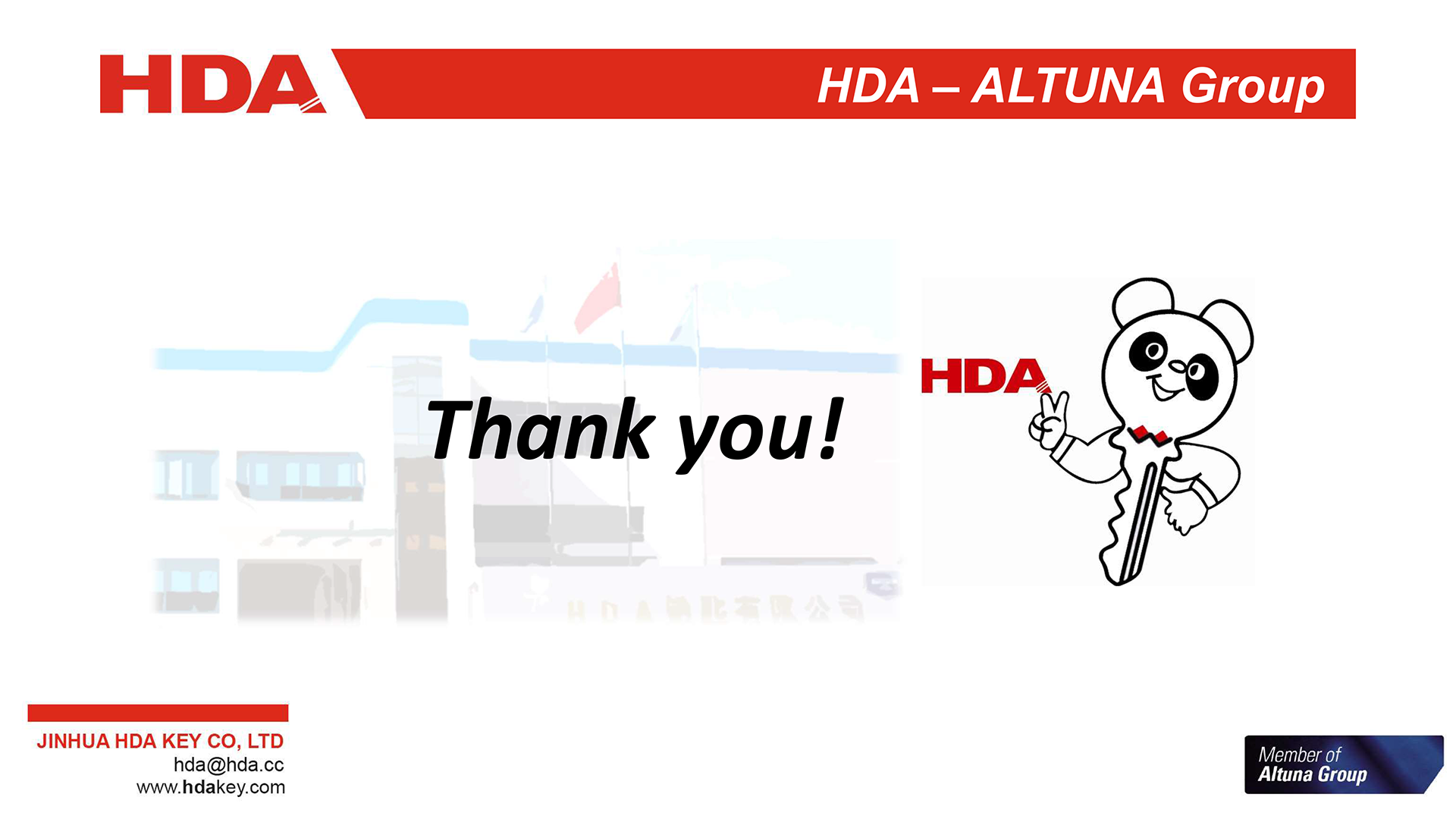 2005年,與歐洲三大鑰匙坯生產(chǎn)企業(yè)之一的西班牙JMA集團(tuán)成立合資公司--金華HDA鑰匙有限公司。 2007年,轉(zhuǎn)為西班牙JMA集團(tuán)獨(dú)資子公司。